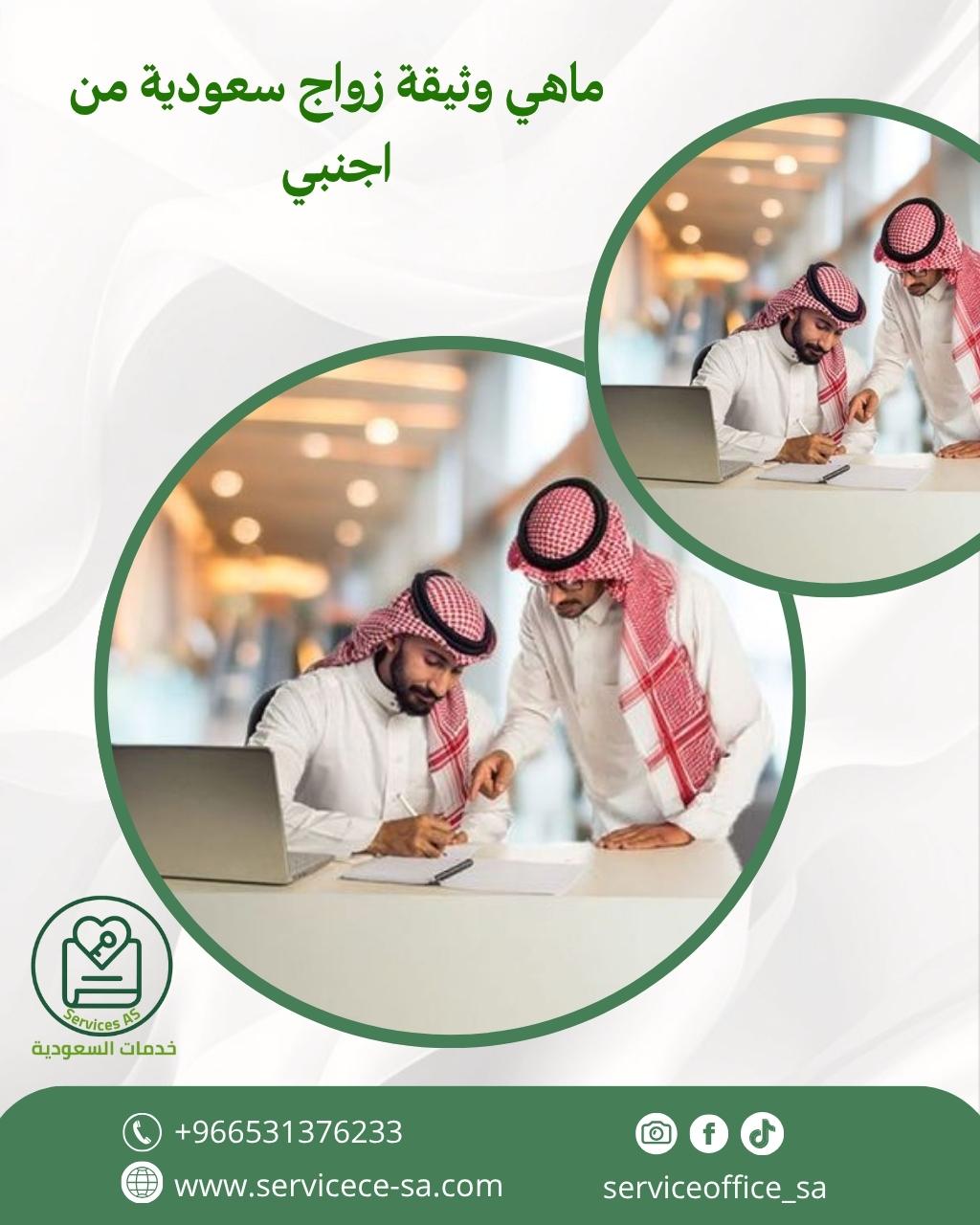 عتبر وثيقة زواج سعودية من أجنبي من المستندات الرسمية التي تصدرها وزارة العدل في المملكة العربية السعودية، وهي إثبات قانوني لعقد الزواج بين مواطنة سعودية وشخص غير سعودي
