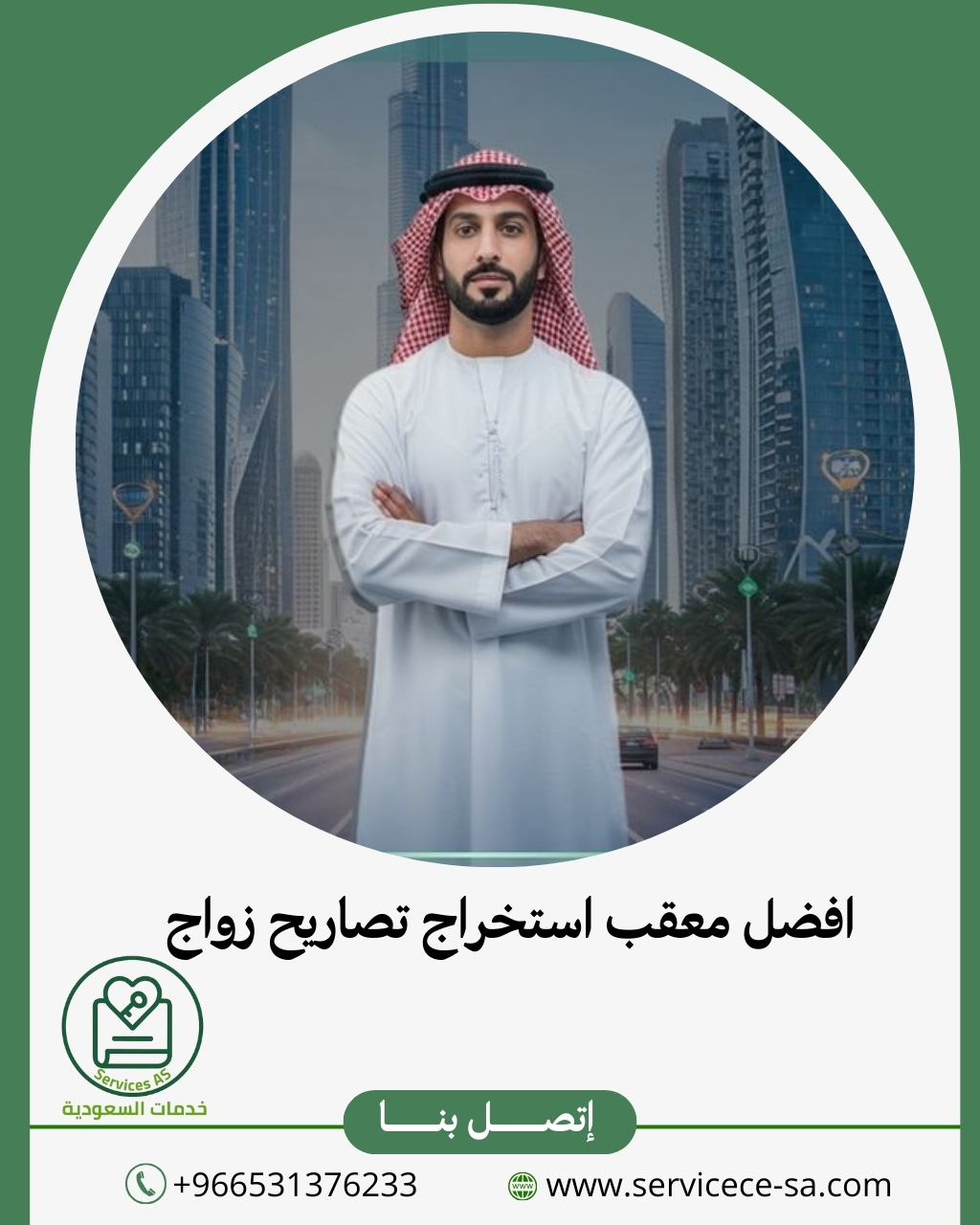 خدمات: تجهيز الملف كاملاً، رفع الطلب عبر "أبشر" أو الإمارة، متابعة التصديق والترجمة، وإصدار التصريح. يقدم باقة متكاملة تشمل تصديق السفارة (إن لزم) وتمثيل لدى الجهات.